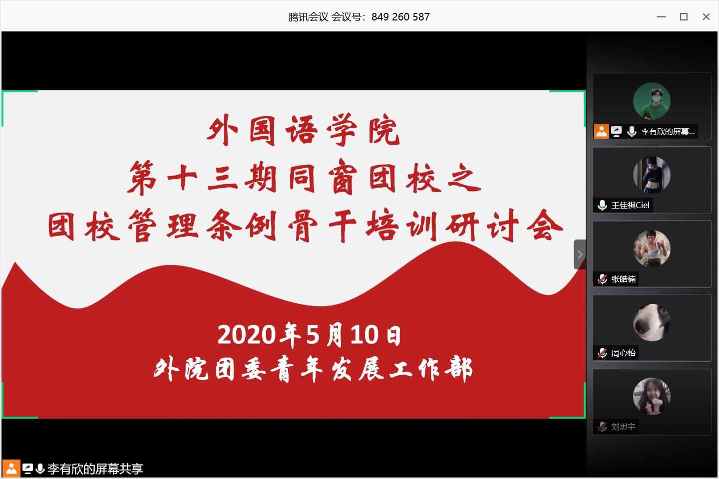 (通讯员 李有欣)5与10日上午,rb88体育官网第十三期同窗团校之团校管理条例骨干培训研讨会于腾讯会议平台举行,会议由院团委青年发展工作部长李有欣担任主讲人,院团委各部门部长、团学组织各系统办公室主任与会。